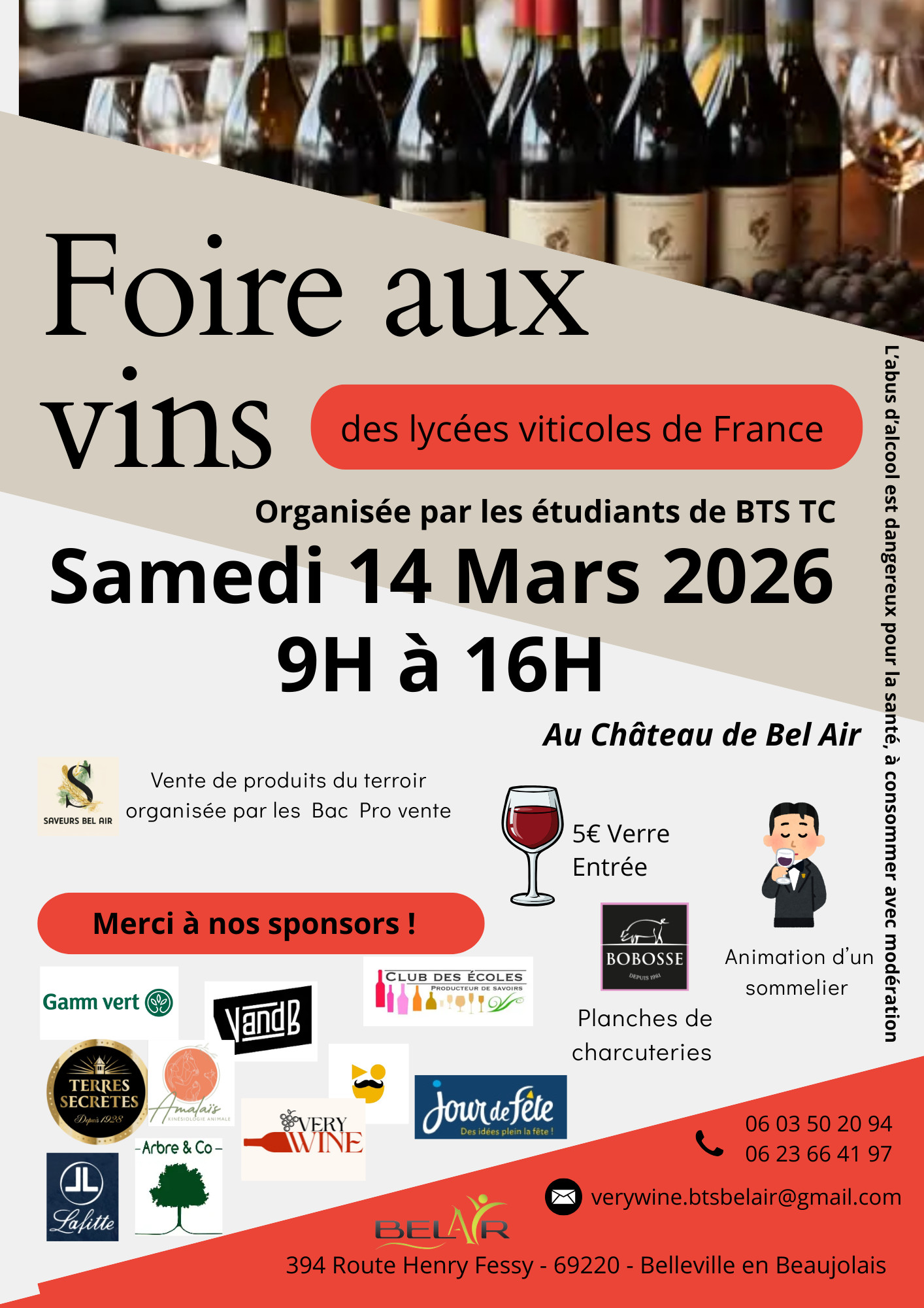 – une Foire aux vins des Lycées viticoles de France animée par les étudiants de BTS TC Vins Bières et Spiritueux –> voir l’affiche,